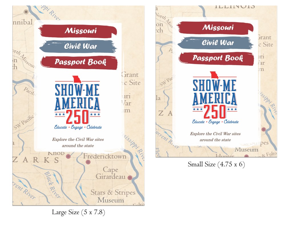 We are excited to offer the new “Show-Me America 250” edition! Celebrate America’s upcoming 250th anniversary by exploring significant Civil War sites around Missouri. This new edition includes eight new “Bonus Sites.” Participants who visit these sites, as well as the other sites in the book, will earn a large antique-style map of all the visit sites. The book also contains information on area Civil War Round Tables and Reenactment groups.