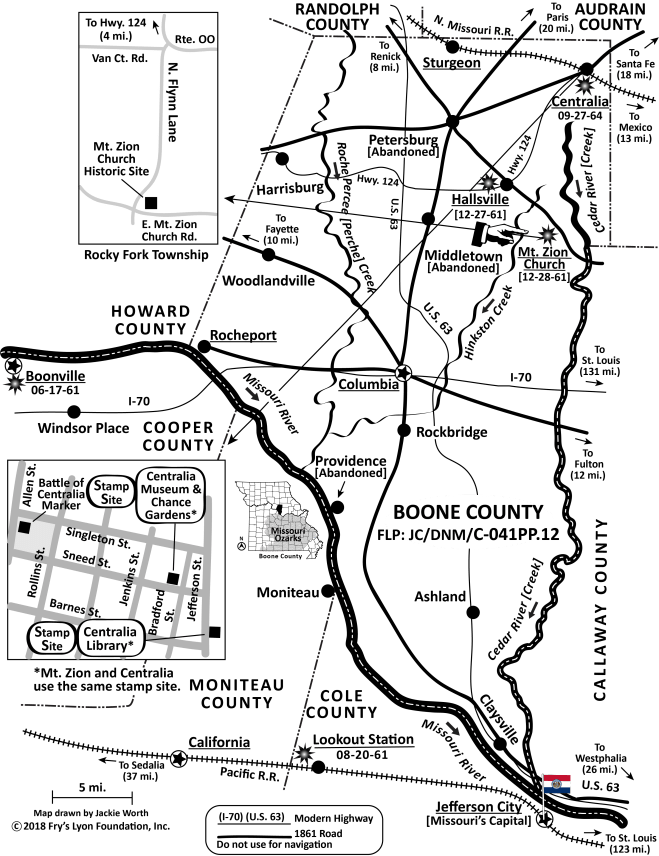 Dec 30, 1861 · Missouri Democrat “Gen. Prentiss After the Rebels—Fight at Mount Zion, Boone County” [Summary: Reports that Gen. Prentiss with a body of 450 men encountered and dispersed 800 rebels at Mount Zion in Boone County. The rebel loss in killed and wounded was 150. The Federal loss was three killed and eleven wounded.]