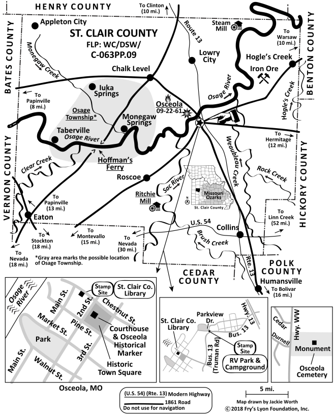 Alternate stamp site: Osceola RV Park and Campground, 140 Parkview Dr., Osceola, Mo. 64776; Please call first: 660-351-6977. Open year round.