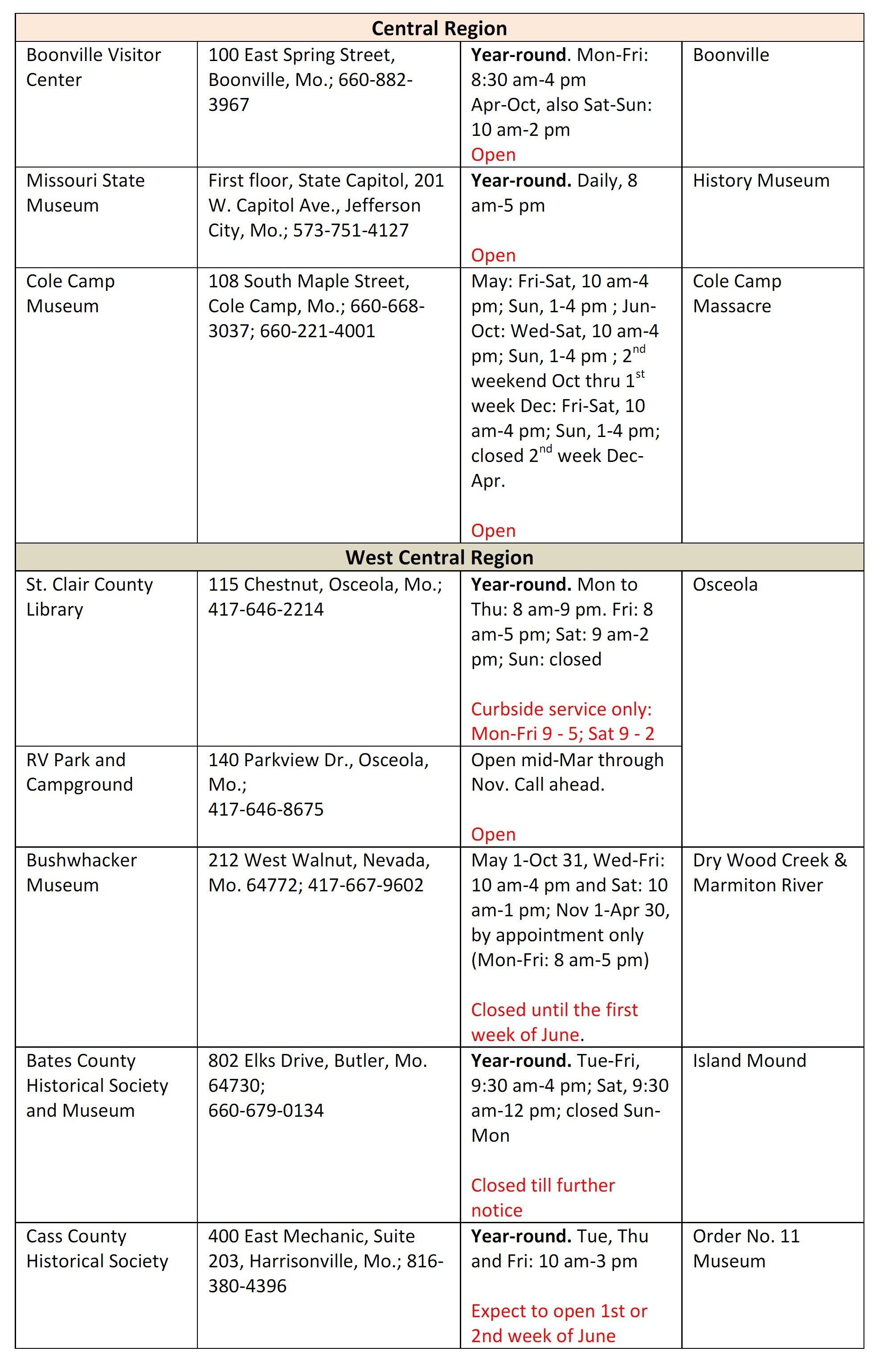 Stamp Site Locations and Hours