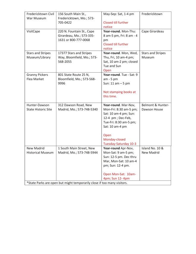 Stamp Site Locations and Hours